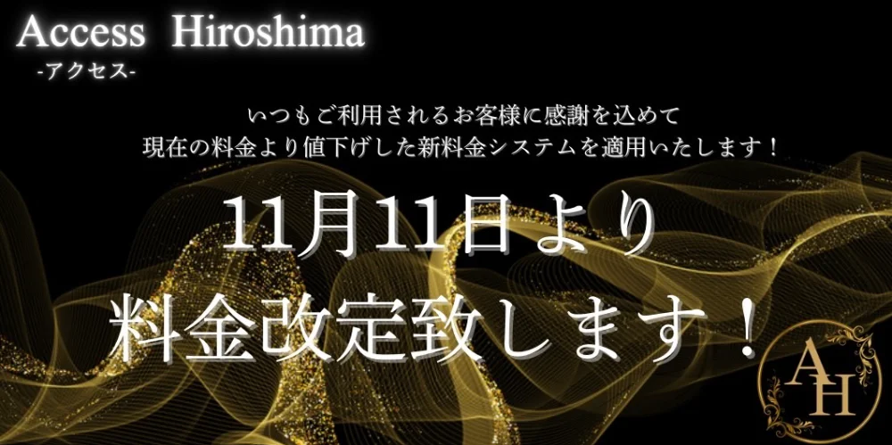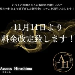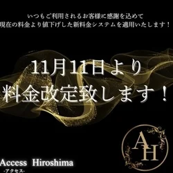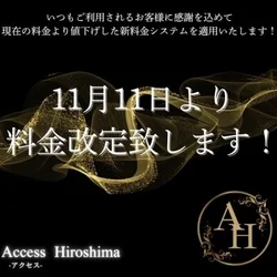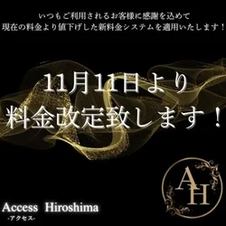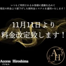 2025.11.08 21:30 『エスタマ見た』でお得にご案内☆ ご覧いただきましてありがとうございます。 どちらのお店に行こうか悩まれている方にオススメです♪ ★☆★クーポン情報★☆★ ♢VIPコース特別割クーポン♢ ご指名でのVIPコースに限り、 90分コース1000円OFF‼︎ 120分コース以上2000円OFF‼︎ 予約受付時にクーポンご利用の旨をお伝え下さい。 ※他のクーポンと併用不可 ※本指名2000円セラピスト(杏・鈴・夢・星凪) 【提示条件】 予約時 お時間が合う方は是非、ご活用くださいませ。 ★店舗情報★ 【店名】Access Hiroshima-アクセス広島 【営業時間】10:00~30:00 【エリア】広島市 【最寄り駅】(広島電鉄)比治山下・比治山橋駅 【TEL】090-2648-0228